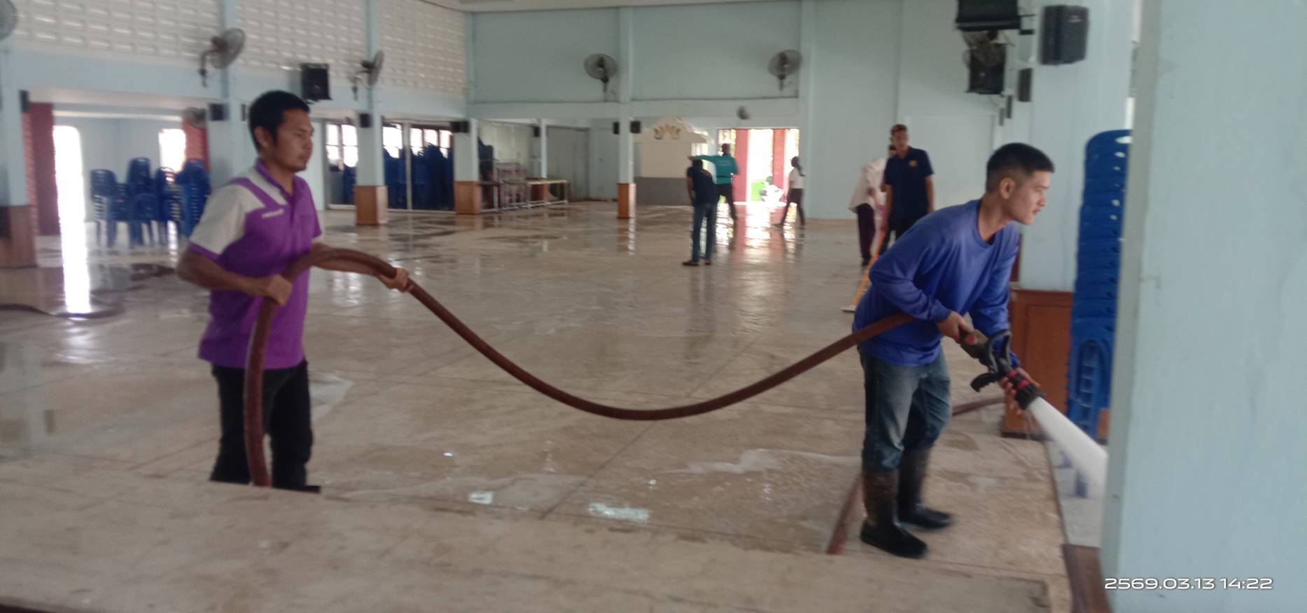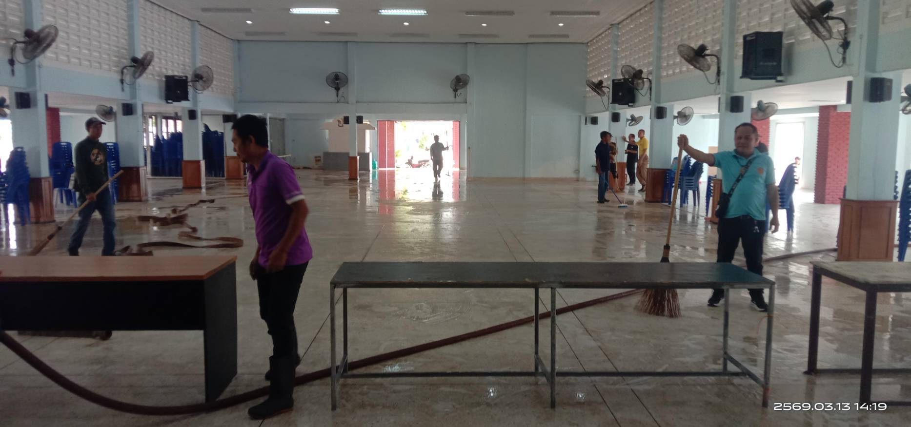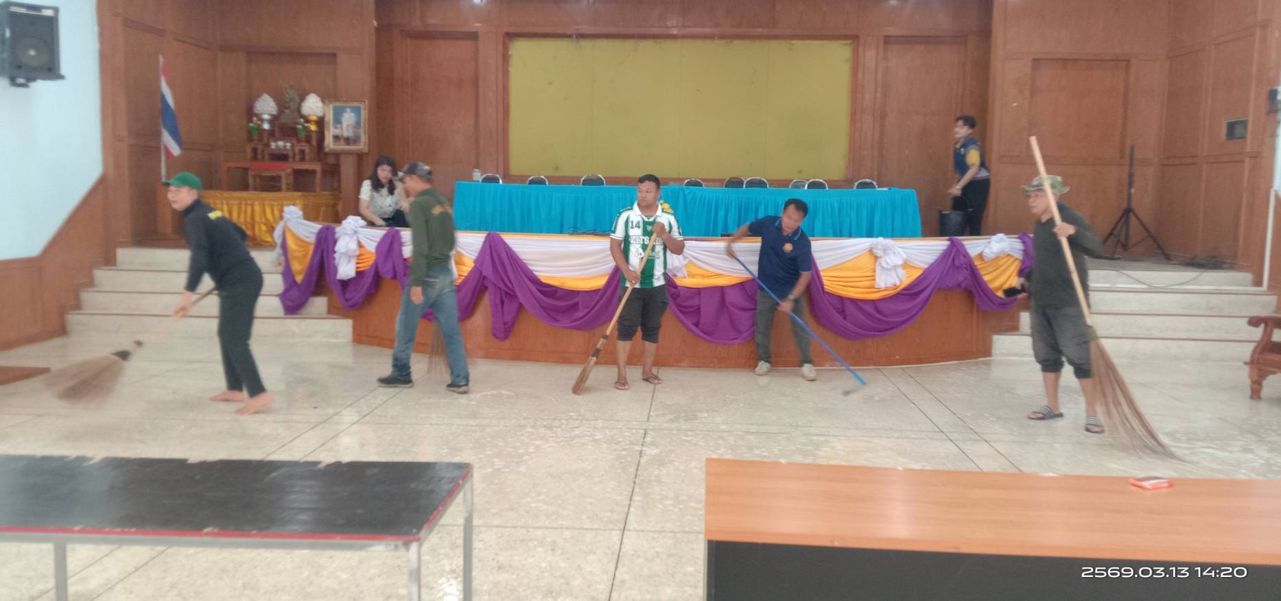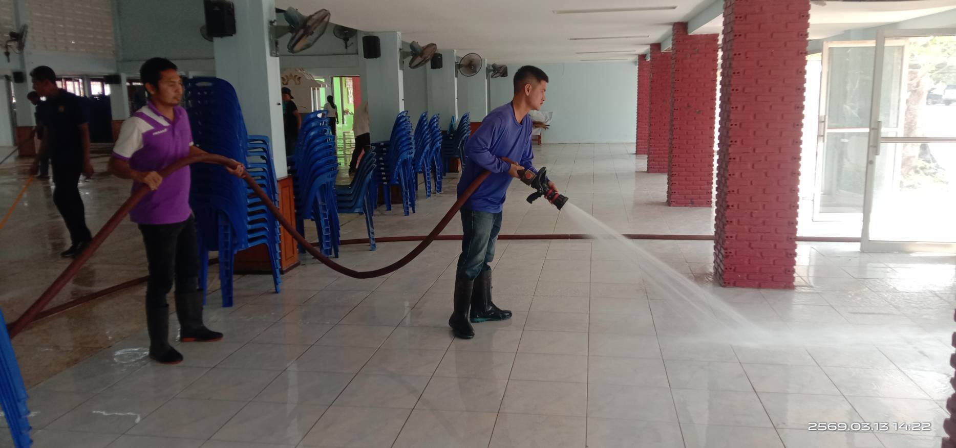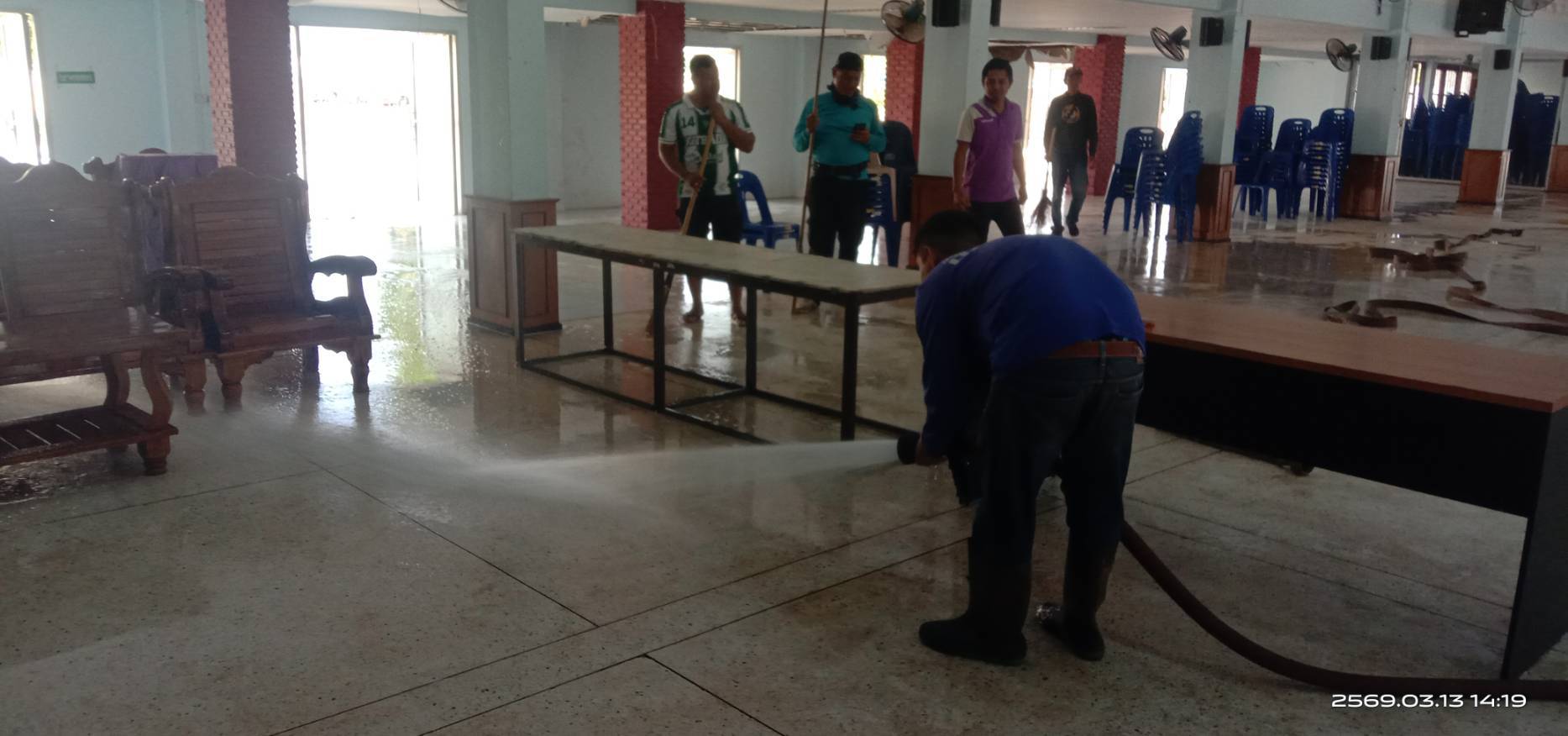 งานป้องกันและบรรเทาสารธารณภัย เทศบาลตำบลธาตุพนมใต้ ลงพื้นที่ทำความสะอาดหอประชุมอำเภอธาตุพนม
